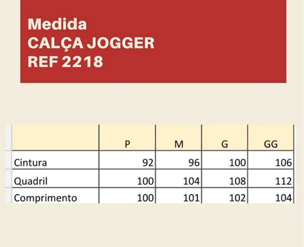 Observação: Tabela de medidas junto as fotos da peça.